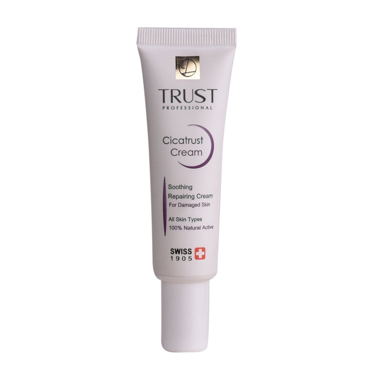 کرم ترمیم کننده تراست مناسب ترمیم پوستهای آسیبدیده و درمان انواع آسیبهای پوستی است. مواد مؤثره موجود در این کرم باعث تحریک به تکثیر سلولهای پوستی و ترمیم آسیبهای واردشده به پوست میشوند؛ این کار را نیز با افزایش انقباض عضلات اطراف ناحیه آسیبدیده، کمک به جمع شدن زخمها و بهبود سریعترشان انجام میدهند. وجود ترکیبات فعال گیاه براسیکای این محصول، از رشد باکتریها و قارچها جلوگیری کرده و از طریق اولیگوگالاکتومانان جلوی التهاب، قرمزی، خارش و سوزش پوست در ناحیه آسیبدیده را میگیرد. همچنین مصرف این کرم با داشتن ترکیبات فعال سرامیدی به آبرسانی پوست هم کمک میکند.