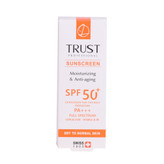 کرم ضدآفتاب و ضدپیری SPF +50 تراست، با استفاده از مرغوبترین و جدیدترین مواد اولیه همچون هیالورونیک اسید و کوآنزیم کیوتن از پوست شما دربرابر پرتوهای مضر آفتاب به طور کامل محافظت میکند. این کرم علاوه بر مهار رادیکالهای آزاد و محافظت از پوست دربرابر آلودگیهای محیطی، از تخریب سلولهای پوستی، بروز چینوچروک، پیری زودس و لکهای ناشی از آفتاب نیز جلوگیری میکند. این محصول بافتی سبک داشته و با قابلیت جذب سریع و آبرسانی قویِ پوست خشک و حفظ رطوبت آن، پس از مصرف منافذ پوستی را نبسته و هیچ خللی در روند تنفس سلولهای پوستی ایجاد نمیکند.